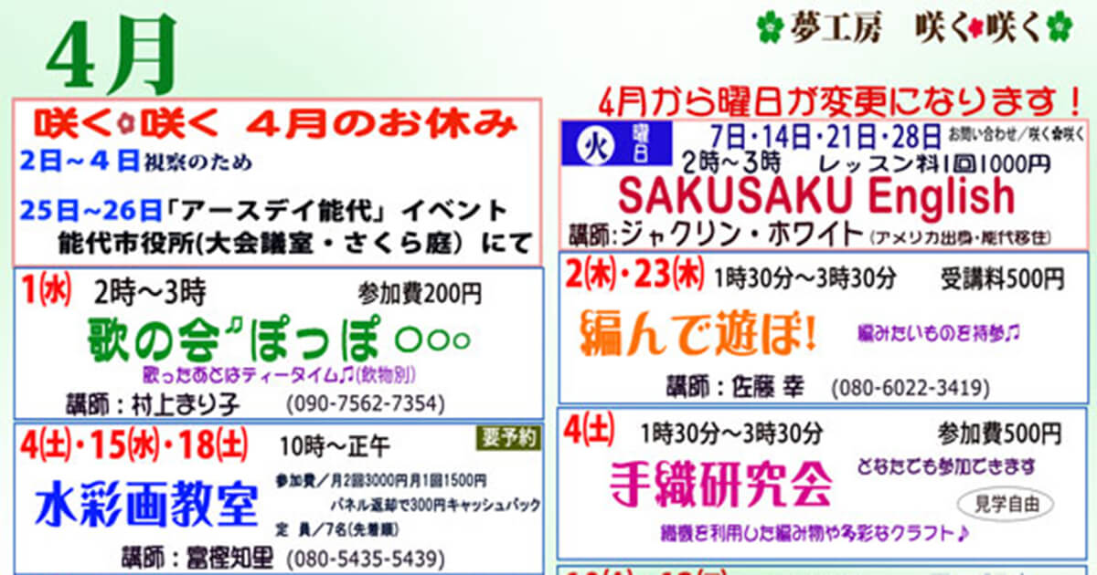 いよいよ4月となりました🌸イベントの案内をさせていただきます。